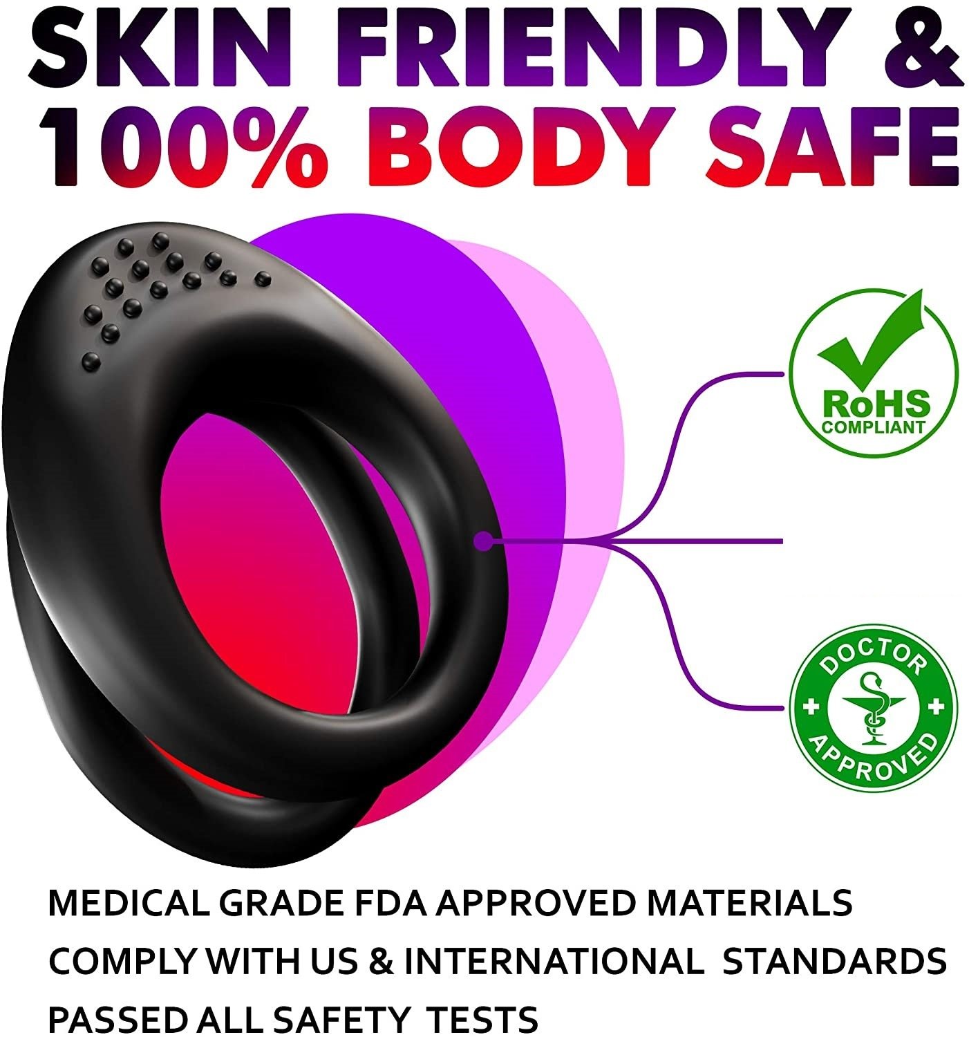 Made of high quality silicone material; skin-friendly; non-toxic; safe and durable.